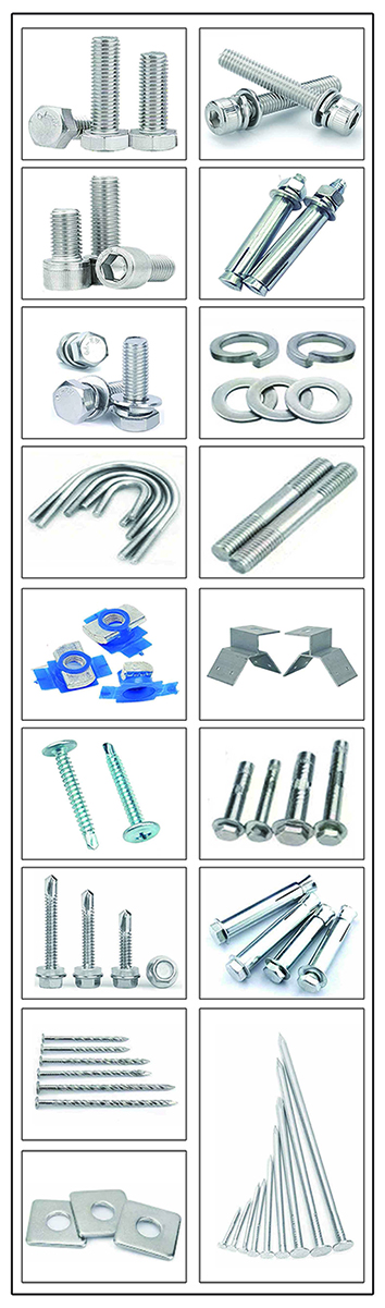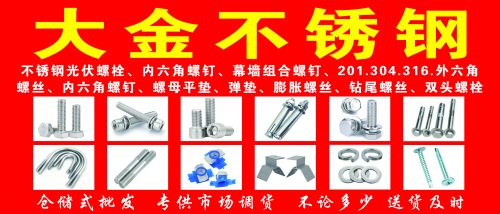 主营:不锈钢内六角,不锈钢外六角,不锈钢膨胀栓、 T型螺栓,化学锚栓,机械锚栓,背栓,吊环螺丝,钻尾丝,拉铆钉,双头螺丝,预埋件,平垫弹垫(按斤卖) 可定做各种不锈钢异形件